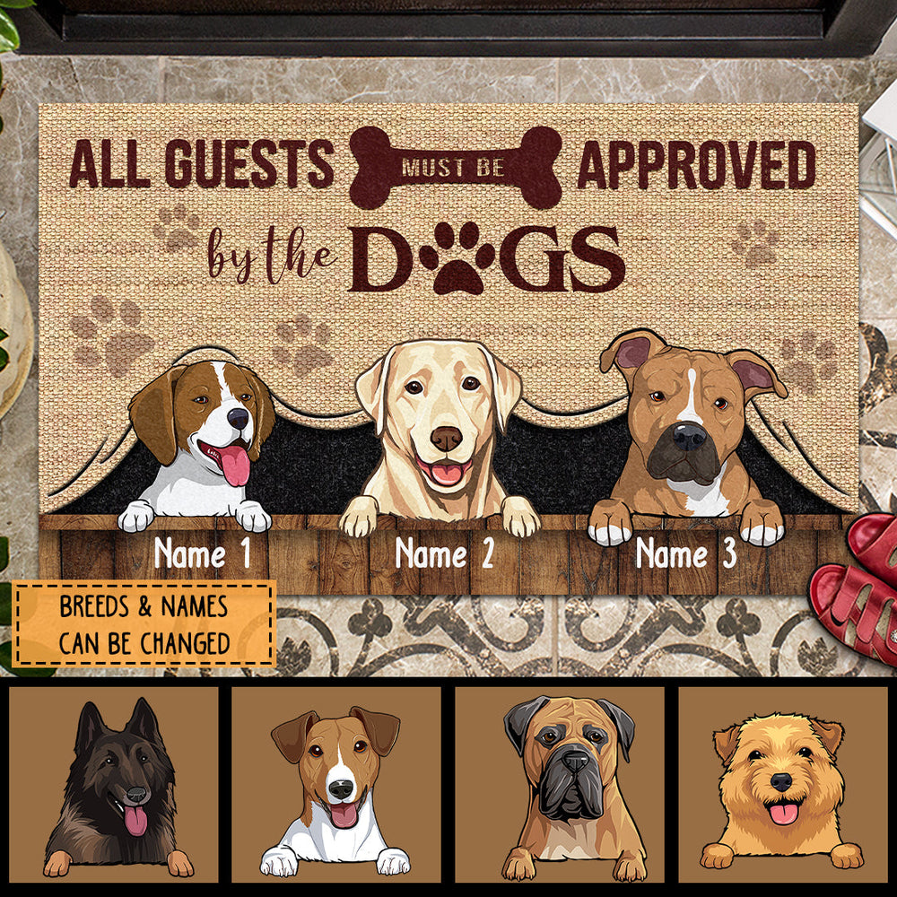 All Guests Must Be Approved By The Dogs, Yellow Canvas Background, Personalized Dog Breeds Doormat
