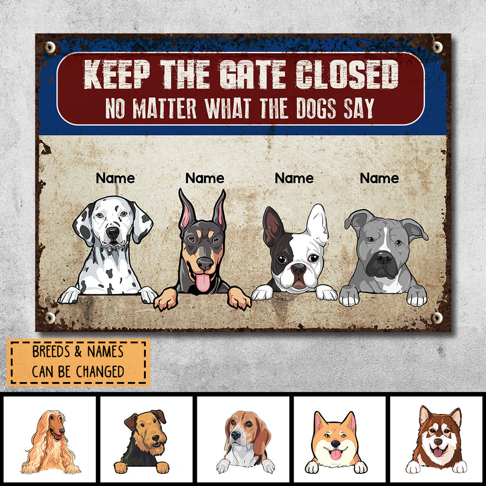 Keep The Gate Closed Metal Yard Sign, Gifts For Dog Lovers, No Matter What The Dogs Say Personalized Metal Signs