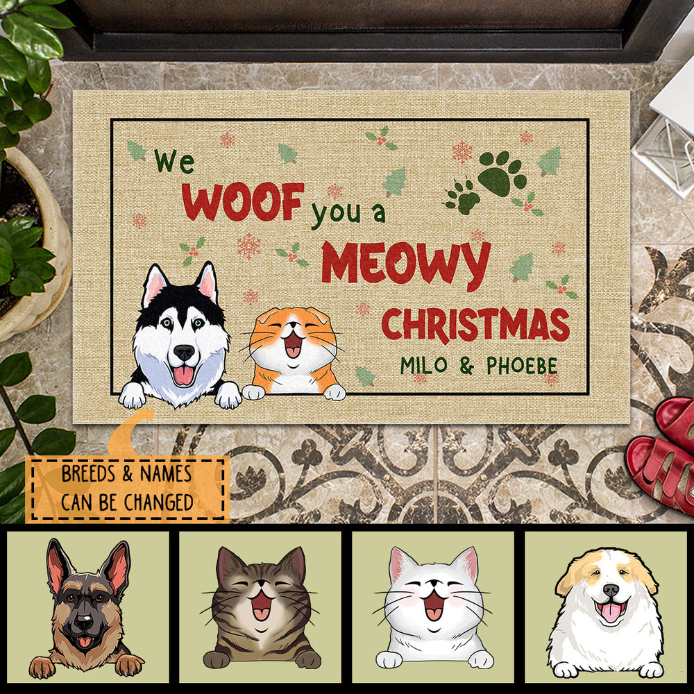 Personalized Dog & Cat Doormat, Gifts For Pet Lovers, We Woof You A Meowy Christmas Doormat, Xmas Home Decor