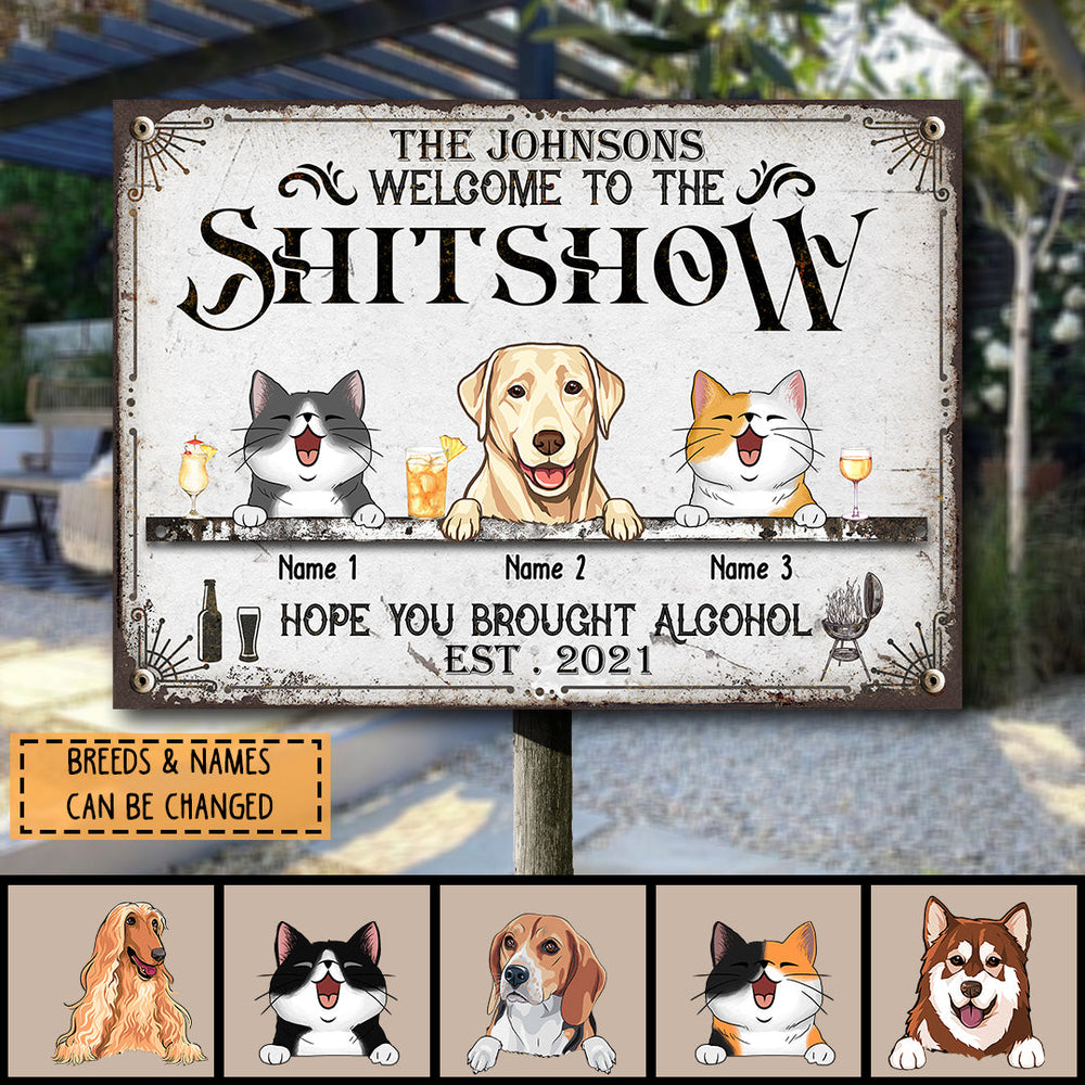 Welcome To The Shitshow Hope You Brought Alcohol Metal Yard Sign, Gifts For Pet Lovers, Personalized Vintage Signs